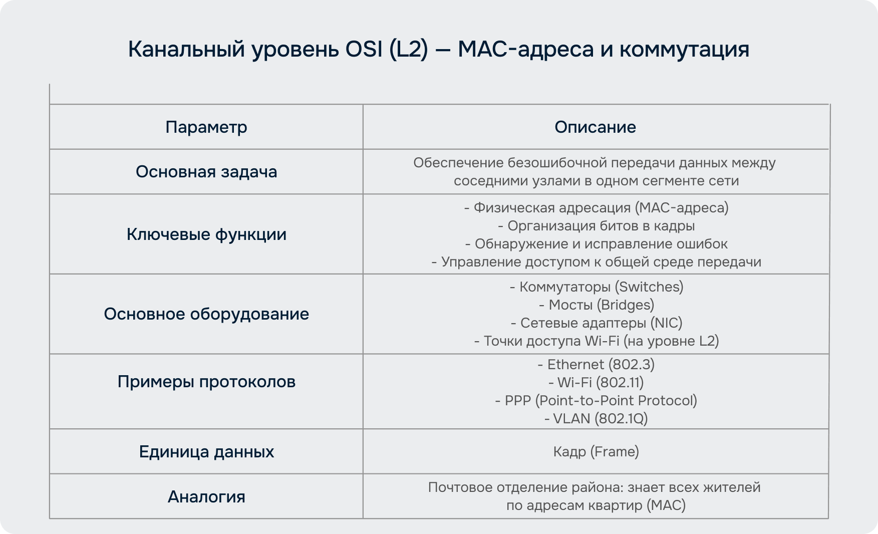 Канальный уровень (L2): работа в пределах одного сегмента сети