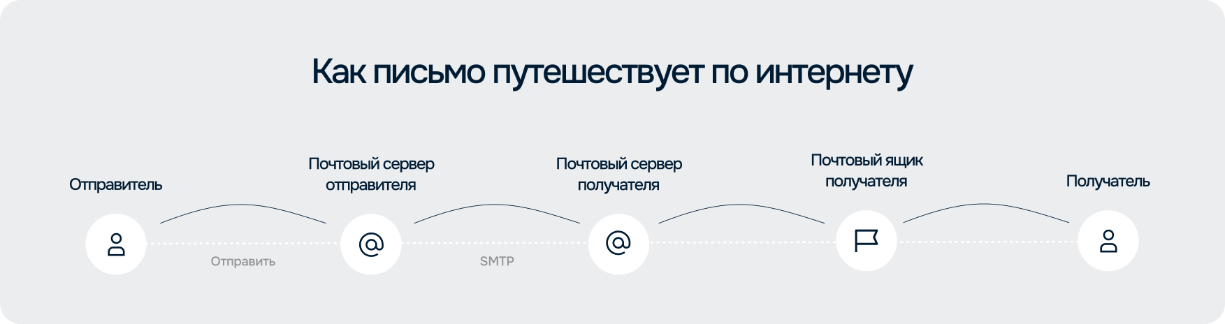 Письмо редко попадает прямо с устройства отправителя в ящик получателя. SMTP организует его точную и отслеживаемую передачу по цепочке: