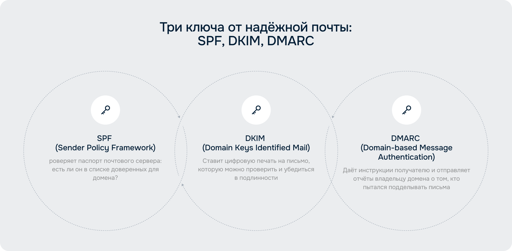 Без настройки этой триады (SPF, DKIM, DMARC) домен остается беззащитным перед подделкой, что напрямую влияет на репутацию, доставляемость писем и безопасность контрагентов. Эти меры превратили уязвимый протокол SMTP в достаточно надежный инструмент для современной коммуникации.