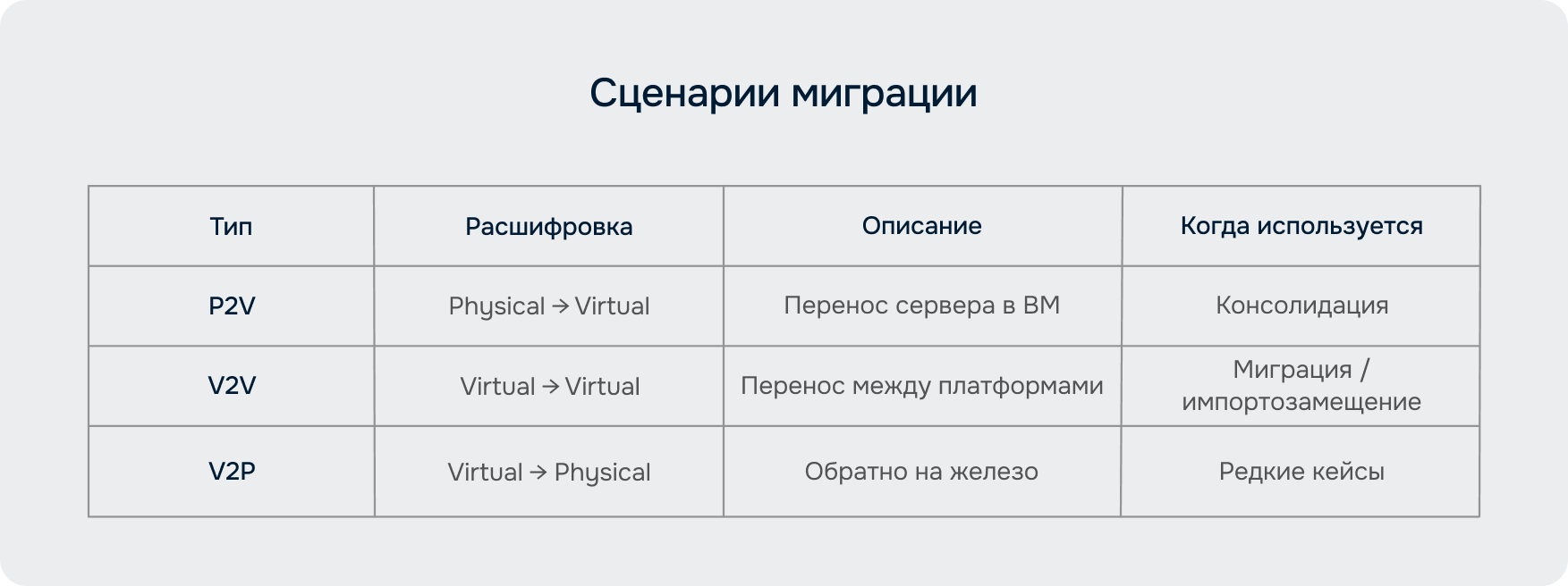 Сценарии миграции: P2V, V2V и V2P — ключевые отличия