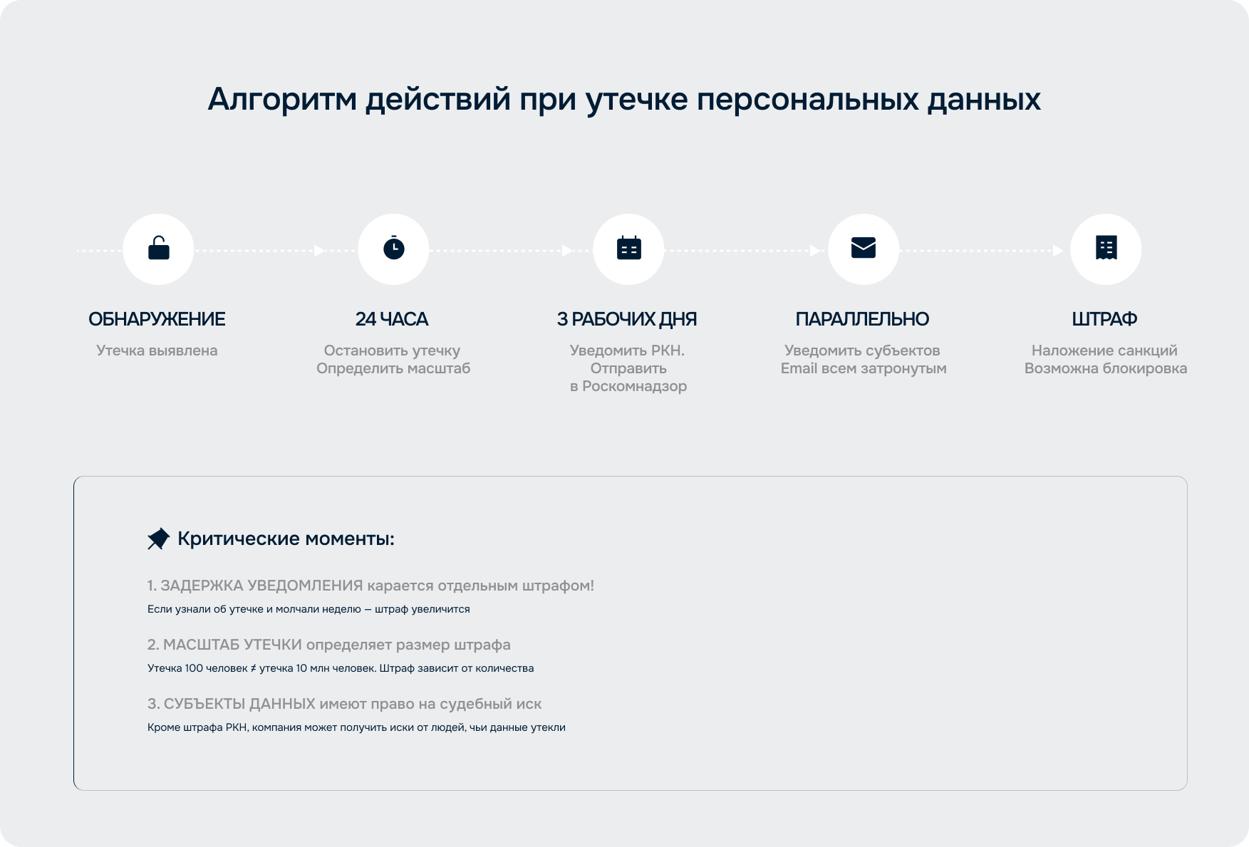 Компания может потратить месяцы на восстановление репутации и доверия. Поэтому профилактика — это не просто соблюдение закона, это защита самого бизнеса. Инвестируйте в безопасность заранее, пока ничего не произошло, а не ищите спасение после инцидента.