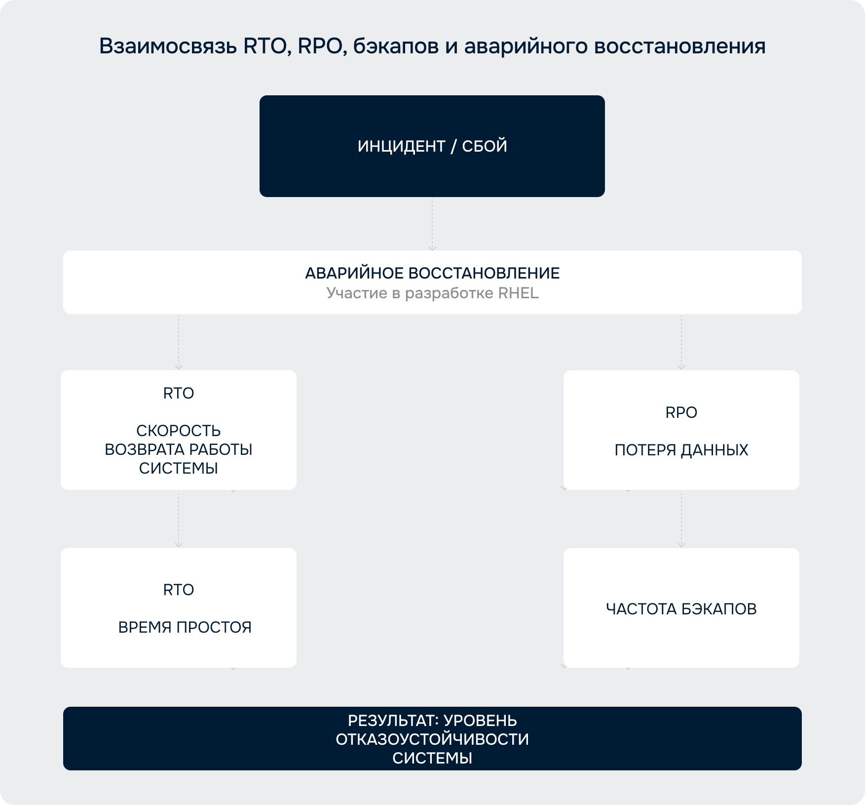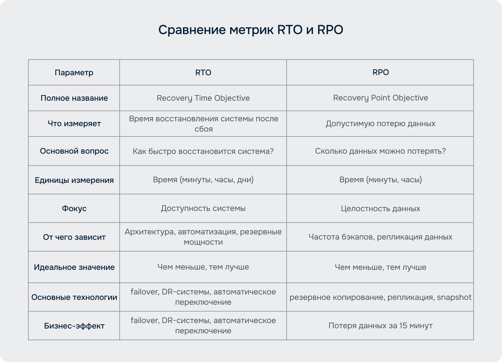 Это показывает, что RTO и RPO — это измеримые показатели, по которым оценивается качество восстановления системы.