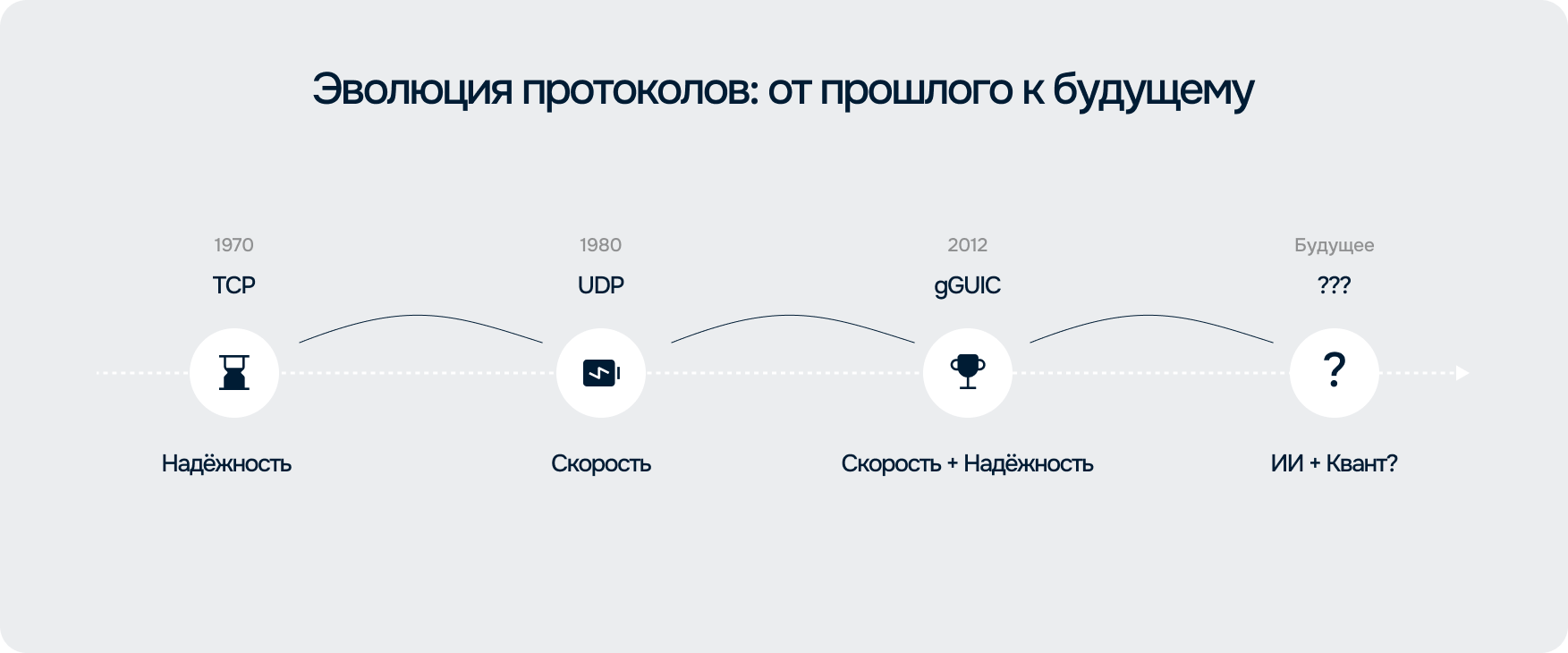 - HTTP/3 базируется на новом протоколе QUIC, который использует UDP, но поверх него реализует функции контроля целостности и защиты данных. Это позволяет одновременно обеспечить и скорость, и надежность.
